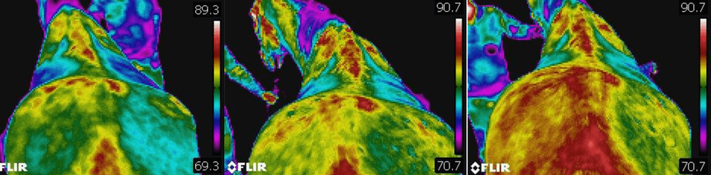 The images tracked changes in key areas, including his spine, stifles, and haunches, revealing notable shifts in temperature and thermal patterns.